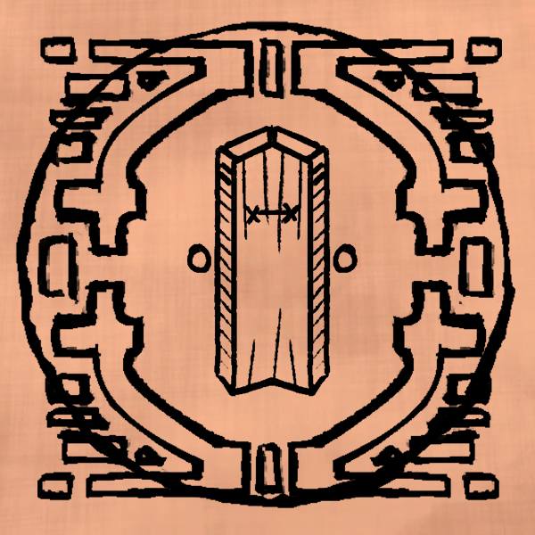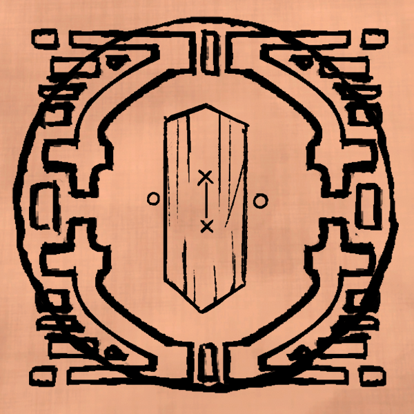A side piece for a crafted shield, attaches to the Shield Middle piece. Spikes can be placed around the outside edge.