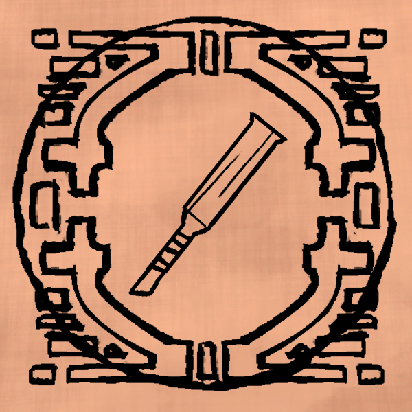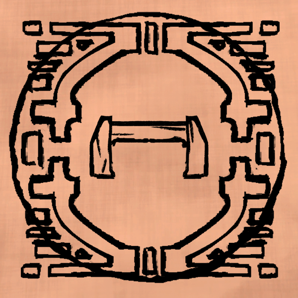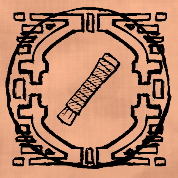 A middle piece for a crafted shield, attaches to the Shield Handle. Has notches that you can see through.